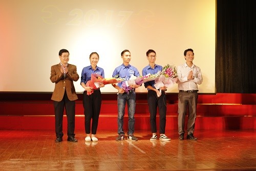 Đại diện Liên chi đoàn đạt giải lên nhận hoa và quà của BTC